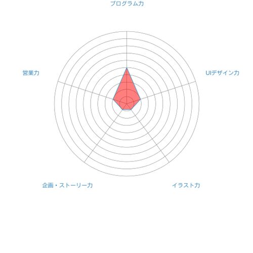 私はプログラムは人並みくらいにはできるのですが、 ゲーム開発で必要なデザイン、UI、ストーリーなどの 能力がからっきし足りていません。(チャートにしてみたら絶望的なステータス・・) 先日もツイッターでストーリー力のなさを嘆いて(?)いたのですが、 …